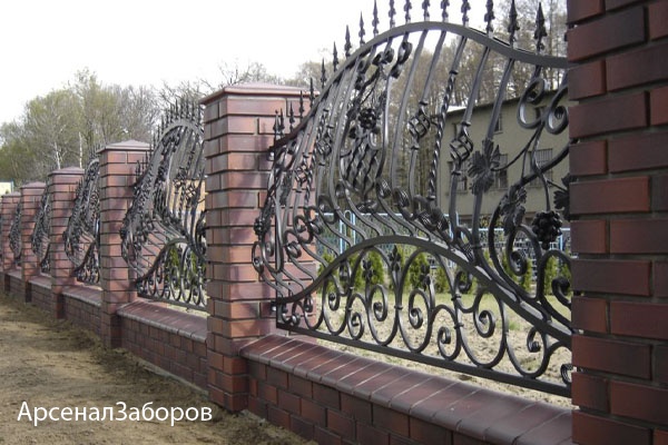 Кованые заборы с кирпичными столбами