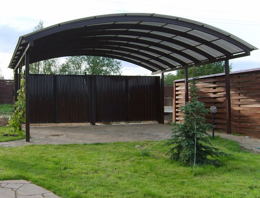 Навесы во дворе из профильной трубы пример 10 в Cyдогде