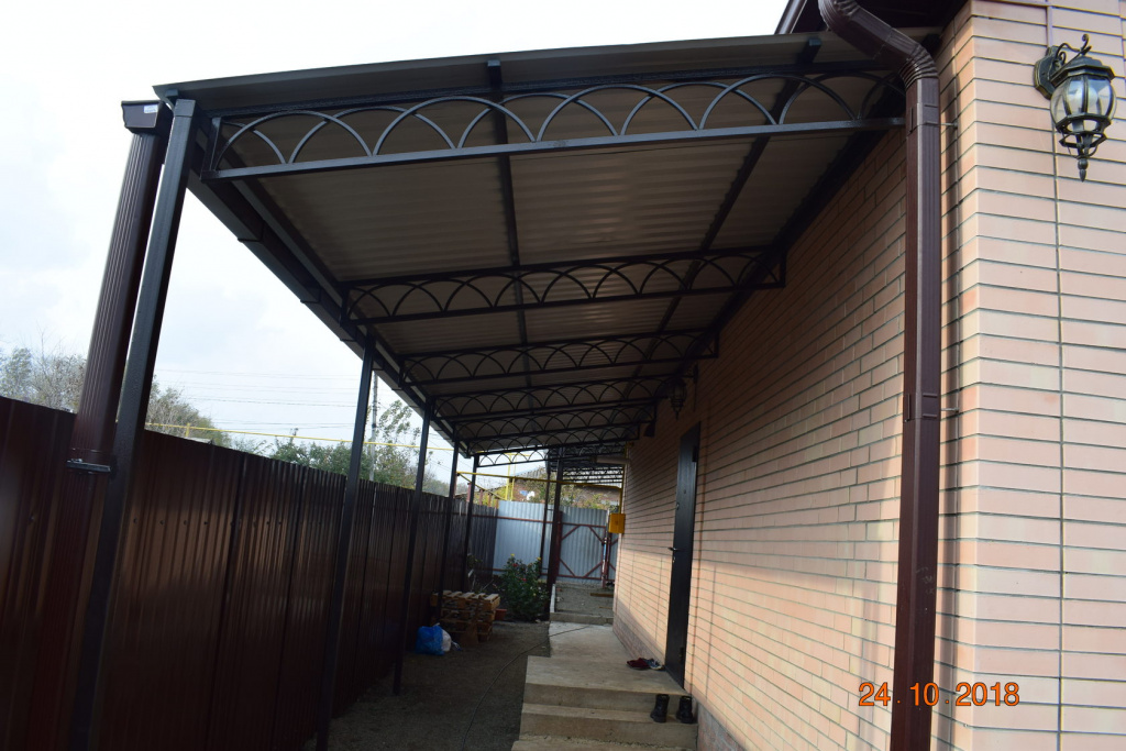 Навесы во дворе из профнастила пример 1 в Cyдогде