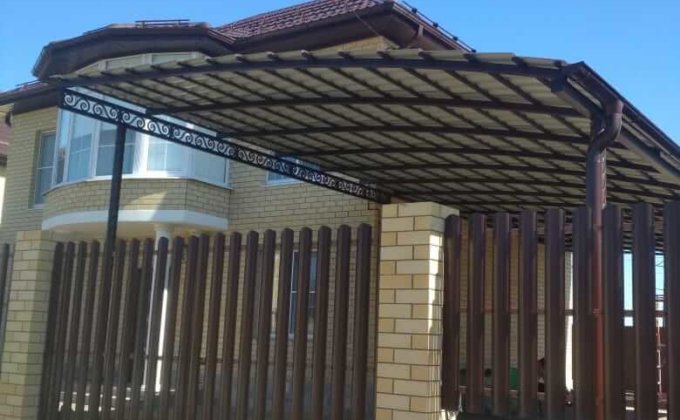 Навесы во дворе из профнастила пример 4 в Cyдогде
